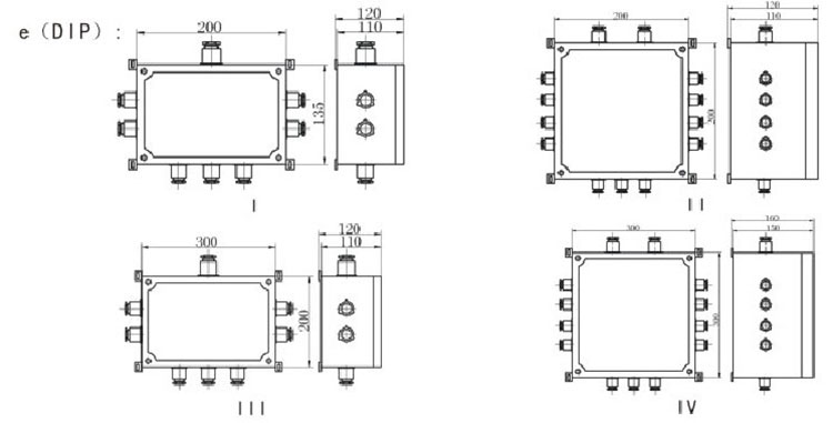 6、接线箱进线口规格常规为英制管螺纹,也可以根据用户要求加工成公制螺纹或NPT等螺纹,但须在订货时备注。