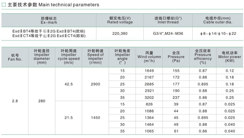 1.采用BT35防爆轴流风机,需在出风口中连接管道时,必须考虑与管道连接方式,以减少通风机的动压在接管段因扩散而造成的损失。